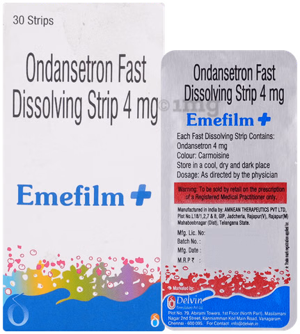 Emefilm tablets help to alleviate nausea and vomiting symptoms, which result from infections, medication use, and digestive health problems. The product delivers immediate relief, which enhances the health status of patients.