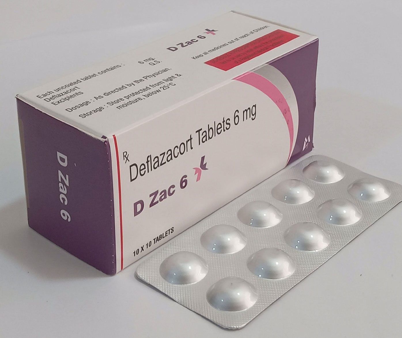 Deflazacort tablets are supplied under the brand name D Zac 6. It is a corticosteroid medication used to treat inflammatory and autoimmune conditions, including Duchenne muscular dystrophy, rheumatoid arthritis, and severe allergic reactions. They work by reducing inflammation and suppressing the immune system, helping to control symptoms and slow disease progression.