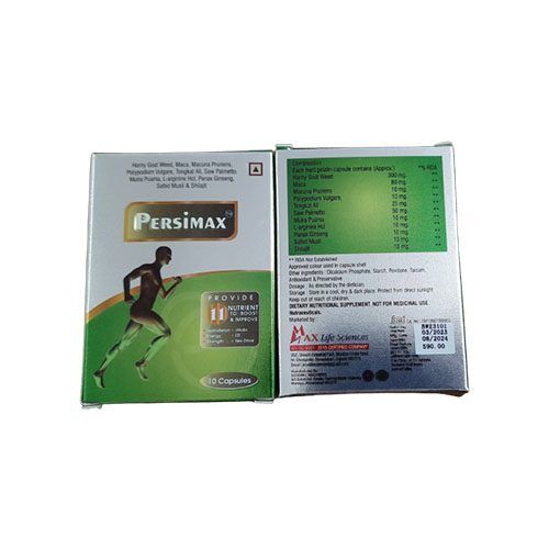 Persimax Capsules shall be used as per the dosage and duration given by your healthcare professional or dietitian. The capsules are delivered in the packaging of 10 capsules per box and shall be taken after the meals to avoid any major side effects or an upset stomach. The capsules are delivered in a GMP-certified facility equipped with highly advanced manufacturing techniques and cutting-edge technology. The capsules are also available for the PCD Pharma franchise and third-party manufacturing services in Pan India.